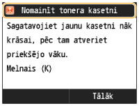 Nemainiet tonera kasetnes agrāk, nekā ir parādījies paziņojums ar uzaicinājumu to darīt.