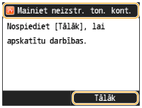 Ja neizstrādātā tonera konteiners ir jāmaina drukāšanas laikā, atlikušās izdrukas tiek izgatavotas tūlīt pēc tam, kad ir uzstādīts jauns neizstrādātā tonera konteiners.