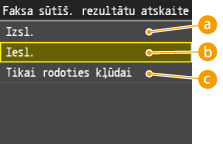 Atlasot <Iesl.> vai <Tikai rodoties kļūdai> opcijai <Faksa sūtīš. rezultātu atskaite>, pārskatā var iekļaut daļu no faksa dokumenta. Iestatiet <Iekļaut sūtīšanas attēlu> kā <Iesl.>.