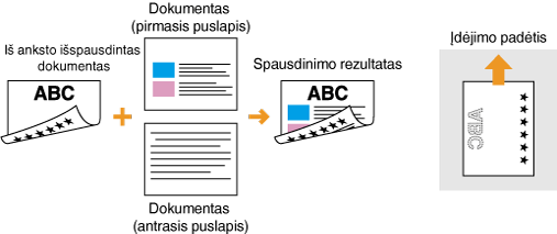 Šiame skyriuje daugiausia aprašyta, kaip tinkama puse ir padėtimi įdėti iš anksto išspausdintą popierių. Bendrosios popieriaus įdėjimo į popieriaus stalčių arba universalųjį dėklą procedūros aprašą rasite skirsnyje Popieriaus įdėjimas į popieriaus stalčių arba Popieriaus įdėjimas į universalųjį dėklą.