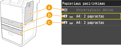 Pasirenkamas į papildomą stalčių įdėtas popierius.