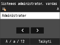 Įveskite ne daugiau kaip 32 simbolių sistemos administratoriaus vardą ir bakstelėkite <Taikyti>. Teksto įvedimas