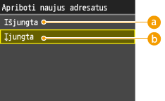 Apribodami skaičių fakso numerių, kuriuos galima nurodyti siunčiant dokumentus adresų knygelėje jau užregistruotais, anksčiau naudotais arba LDAP serveriuose ieškomais numeriais, galite sumažinti galimybę nurodyti neteisingus adresatus ir apsaugoti vartotojus nuo informacijos nutekėjimo. Kai ši funkcija įgalinta, aparatas draudžia vartotojams įvesti adresatus naudojant skaičių mygtukus, pridedant naujų įrašų adresų knygoje ir redaguojant esamus adresų knygos įrašus.
