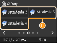 <Ulubione ustawienia kopiowania> <Ulubione ustawienia faksu> (imageRUNNER C1225iF) <Ulubione ustawienia skanowania>Wyświetla często wykorzystywane zapisane ustawienia dla funkcji kopiowania, faksowania i skanowania. Funkcja <Kopiowanie identyfikatora> jest wstępnie zapisana w pozycji <Ustawienia 1>. Zapisywanie najczęściej używanych ustawień kopiowania