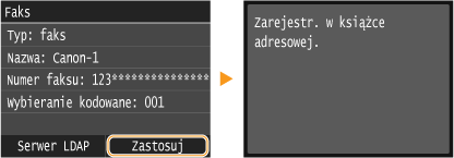 W przypadku dostępu do serwera LDAP odbiorców można zarejestrować odbiorców wyszukanych w Książce adresowej z serwera. Wcześniej należy wybrać ustawienia połączenia z serwerem LDAP.