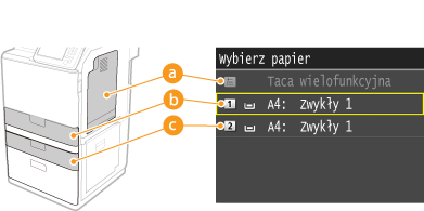 Należy wybrać źródło papieru zawierające papier, który ma zostać użyty.