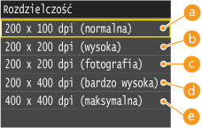Rozdzielczość można dostosować do typu dokumentu. Wraz ze zwiększeniem rozdzielczości zwiększa się wyrazistość obrazu, ale także czas wysyłania.
