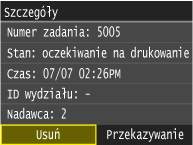 Dostępna jest funkcja wyświetlania informacji dotyczących dokumentów przechowywanych w pamięci, w tym numerów faksu nadawców i liczby przesłanych stron, istnieje również możliwość usuwania niepotrzebnych dokumentów.
