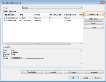 W oknie dialogowym [Edytuj książkę adresową] kliknij przycisk [Dodaj osobę].