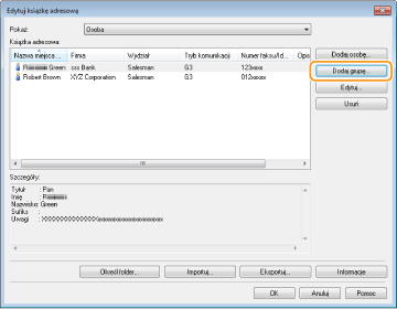W oknie dialogowym [Edytuj książkę adresową] kliknij przycisk [Dodaj grupę].