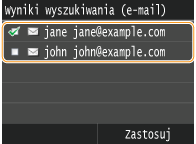 Zaznacz pole wyboru odbiorcy i dotknij opcję <Zastosuj>.