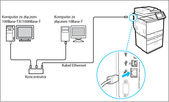 Urządzenie należy podłączyć do komputera za pośrednictwem routera. Podłącz urządzenie do routera za pomocą kabla sieciowego LAN.