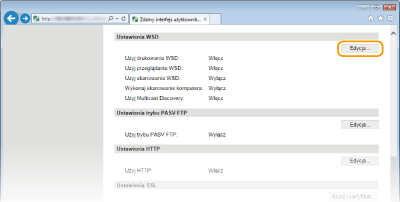 Zaznaczenie tego pola wyboru umożliwia uzyskanie informacji o urządzeniu przez komputer za pomocą interfejsu WSD. To pole wyboru jest zaznaczane automatycznie po zaznaczeniu pola wyboru [Użyj Drukowania WSD]. [Użyj skanowania WSD]