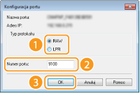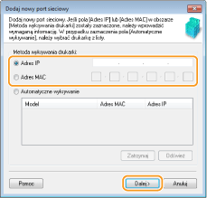 W przypadku gdy zmienił się adres IP urządzenia, należy dodać nowy port. Dodanie portu jest także skutecznym rozwiązaniem, gdy podczas instalacji sterownika drukarki w folderze drukarki w systemie Windows wybrano niewłaściwy typ portu.