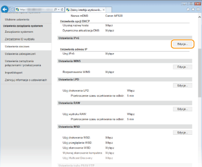 Kliknij element [Edycja...] znajdujący się w sekcji [Ustawienia IPv6].