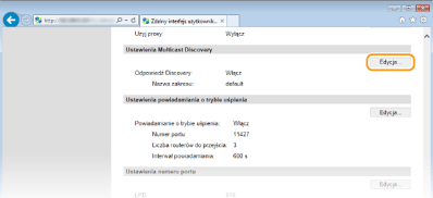 Kliknij element [Edycja...] znajdujący się w sekcji [Ustawienia Multicast Discovery].