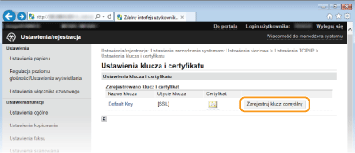 Kliknij opcję [Zarejestruj klucz domyślny] po prawej stronie pary kluczy, której chcesz użyć.