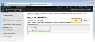 Zaznacz pole [Użyj IPSec] i kliknij przycisk [OK].