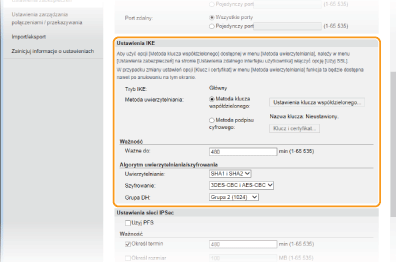 Określ ustawienia [Ważne do] i [Uwierzytelnianie]/[Szyfrowanie]/[Grupa DH].
