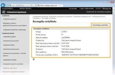 Kliknij przycisk [Weryfikacja certyfikatu].