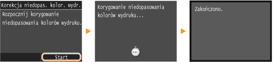 Niedopasowanie kolorów wydruków oznacza przesunięcie pozycji kolorów, które może mieć miejsce podczas drukowania przy użyciu kilku zasobników z tonerem. Niedopasowanie kolorów wydruków może spowodować, że wydruki będą nieostre. W przypadku niedopasowania kolorów wydruków należy przeprowadzić poniższą procedurę. Tego typu regulacja jest niekiedy przeprowadzana automatycznie na przykład podczas wymiany zasobników z tonerem.