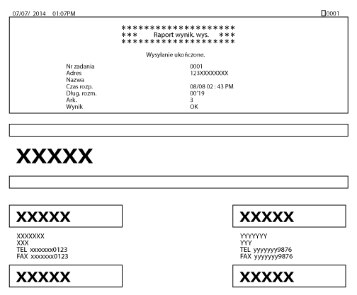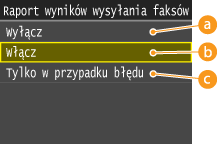 <Raport wyników wysyłania faksów> lub <Raport wynik. odb. e-mail/pliku>