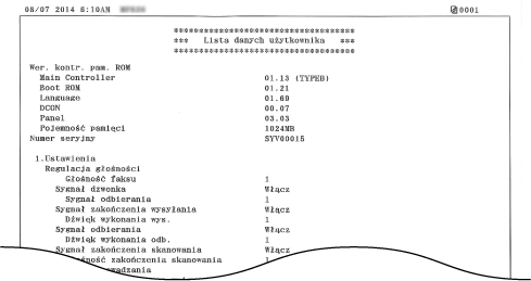 <Lista danych użytkownika> nie zawiera list ustawień: <Ustawienia sieciowe> ani <Ustawienia zarządzania systemem>. Aby sprawdzić wszystkie ustawienia, w tym: <Ustawienia sieciowe> oraz <Ustawienia zarządzania systemem>, należy wydrukować listę <Lista danych menedżera systemu>.