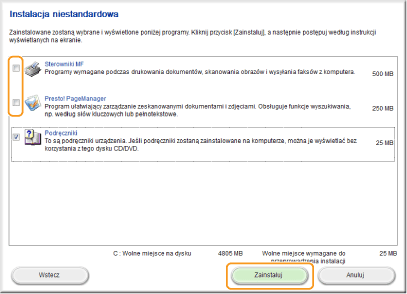 Odznacz wszystkie pola wyboru z wyjątkiem [Podręczniki] i kliknij przycisk [Zainstaluj].