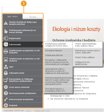 Wyświetla spis treści programu e-Podręcznik.
