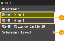 A utilização de <2 em 1>/<4 em 1> reduz o rácio de cópia automaticamente (o rácio de cópia aparece no ecrã). Pode aumentar ou reduzir ainda mais o rácio de cópia antes de premir