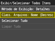 Pode especificar uma definição de ordenação, como <Nome (Crescente)> ou <Data/Hora (Crescente)>, como a predefinição para a ordenação de ficheiros.