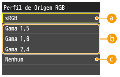 Quando a opção <Nenhum> é selecionada para <Perfil de Origem RGB>