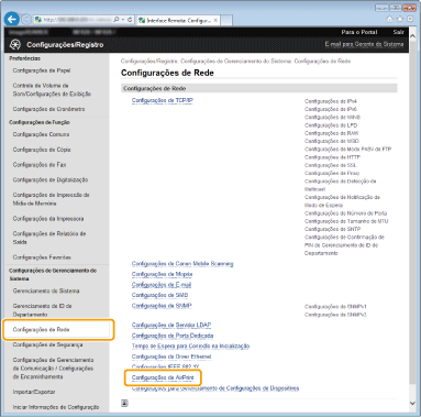 Ativar o serviço AirPrint selecionando a caixa de verificação [Usar AirPrint] também ativa as definições (de IPv4) <Usar HTTP> e <Configurações de mDNS>.