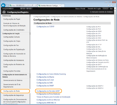 Se a rede tiver um servidor LDAP integrado, pode procurar números de fax ou endereços de correio eletrónico no servidor e especificá-los como destinos ou registá-los no livro de endereços. Pode registar um máximo de cinco servidores LDAP na máquina. Registar servidores LDAP através da UI Remota.