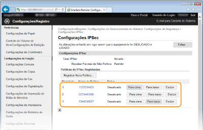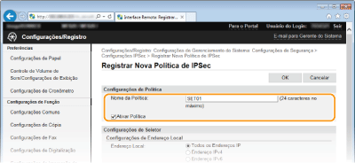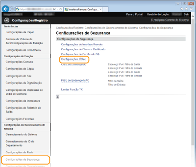Pode ativar ou desativar a comunicação através de IPSec a partir de <Menu>. Usar IPSec