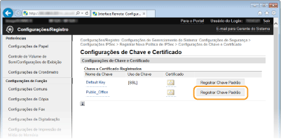 Clique em [Registrar Chave Padrão] à direita de um par de chaves que pretenda utilizar.