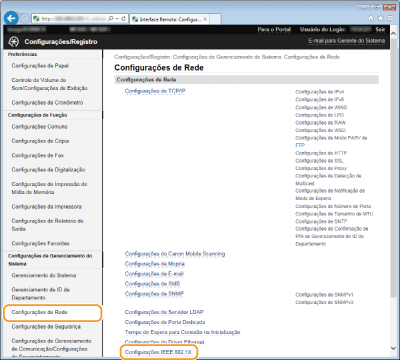 Clique em [Configurações de Rede]  [Configurações IEEE 802.1X].