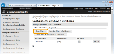 Clique em [Configurações de Segurança]  [Configurações de Chave e Certificado].