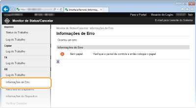 Quando ocorre um erro, esta página é apresentada clicando na mensagem que aparece em [Informações de Erro] na página do portal (página principal).