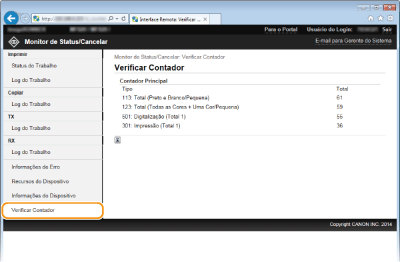 É apresentado o número total de páginas impressas pelas funções de impressão, cópia e fax.