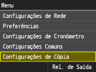 Todas as definições relativas a cópia são apresentadas com breves descrições. As predefinições estão assinaladas com uma cruz (