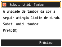 A indicação "XXXX" que aparece nas descrições abaixo é substituída pelas cores preto, amarelo, magenta ou ciano da unidade de tambor nas mensagens reais.