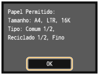Certifique-se de que colocou na máquina o tamanho e o tipo de papel apresentados no ecrã e toque em <OK>.