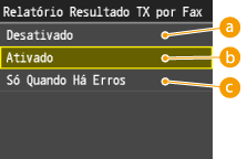 Se selecionar <Ativado> ou <Só Quando Há Erros> para <Relatório Resultado TX por Fax>, é possível incluir uma parte de um documento de fax no relatório. Defina <Incluir Imagem TX> como <Ativado>.
