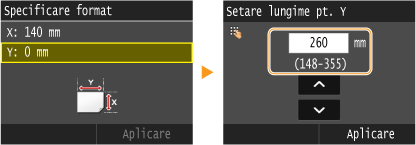 Introduceţi lungimea părţii <Y> şi atingeţi <Aplicare>.