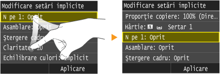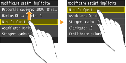 Dacă este atins din greşeală un articolMişcaţi degetul de pe articol pe afişaj şi apoi ridicaţi-l pentru a anula selecţia.