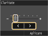 , valoarea creşte/scade cât timp ţineţi apăsat. Când se afişează