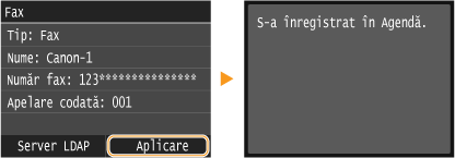 Introduceţi numărul sau adresa cu ajutorul tastelor numerice şi atingeţi <Aplicare>.