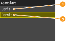 Când pregătiţi mai multe copii ale documentelor cu mai multe pagini, setaţi <Asamblare> la <Pornit> pentru a colaţiona copiile în ordinea consecutivă a paginilor. Această funcţie este utilă la pregătirea prospectelor pentru întâlniri şi prezentări.
