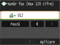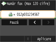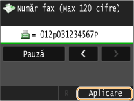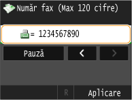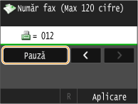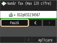 Atingeţi <Pauză> pentru a introduce o pauză la sfârşitul numărului de fax dacă este nevoie.